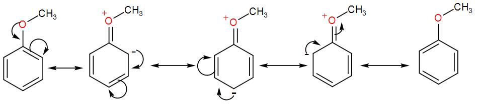 Note: As we can see in the above discussion we mentioned that electron withdrawing groups increases the electron density at ortho and para position but the reason behind it can be understood from the resonance hybrid structures of anisole-