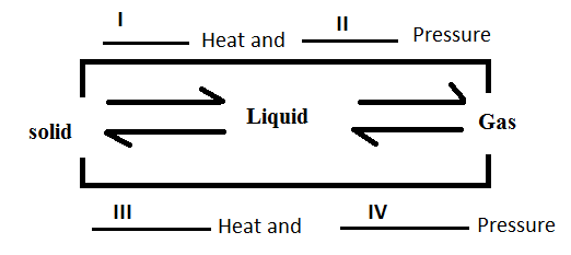 So, the energy or heat in the particles decrease as we move from solid state to gaseous state and pressure also decrease as we move from solid state to gaseous state.