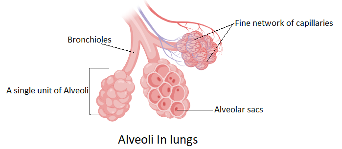 Note: The alveolar sacs are very sensitive structures and are easily targeted by various virus and bacterial species. For example, in the case of coronavirus disease, the virus attacks the alveoli of the lungs. This leads to the accumulation of mucus in these sacs. The fluid blocks efficient air exchange. This leads to difficulty in breathing.