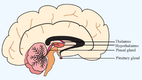 Hint: Thalamus, Hypothalamus and Pineal gland are all parts of the Diencephalon, whose main function is to relay sensory and motor information. It is also responsible for consciousness, alertness and sleep.