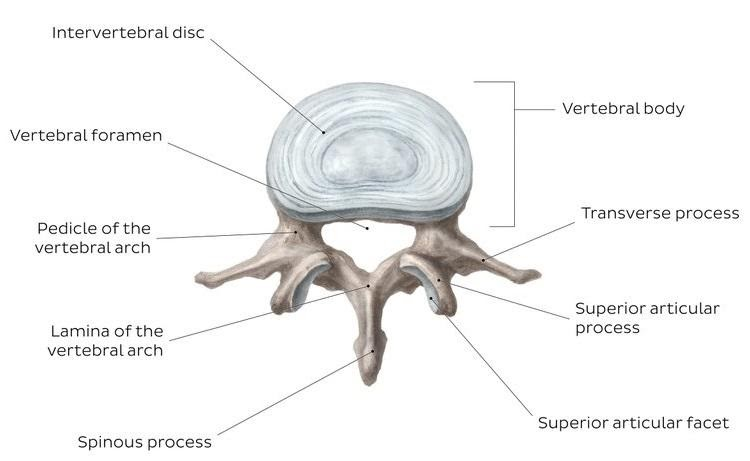 The vertebrae are an important structure in vertebrates. They support the head, neck and the body. They provide attachment points for muscles and ligaments, allowing many of the motions such as bending and twisting. The vertebrae also protect the spinal cord from the risk of damage due to trauma and everyday activities. There is no blood supply to the intervertebral discs.
