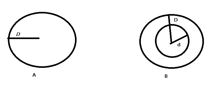 Let us consider the shaft as a cylinder. Then we have a solid cylinder $A$ with radius $D$ and a hollow cylinder $B$ with inner radius $d$ and outer radius $D$ as shown in the figure.