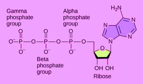 ATP is, basically, a nucleotide bound to three phosphate groups. The nucleotide is adenosine. A nucleotide consists of the nitrogenous base, adenine; the sugar, ribose; and a chain of three phosphate groups bond to ribose. The three phosphate groups are named as alpha, beta and gamma, with respect to their distance from the ribose sugar. The actual power source which the cell taps is the phosphate of ATP. The beta and gamma bonds of phosphates release energy when they are broken. The phosphate bonds are broken by consuming a water molecule (a process called hydrolysis). Usually, the outer phosphate is removed and transferred to another molecule by a process called phosphorylation. The removal of the outer phosphate group is carried out by special enzymes. Simultaneous breaking and synthesis of ATP molecules happen through the process of cellular respiration. Enzyme ATP synthase produces most of the ATP by converting adenosine diphosphate and phosphate into ATP. This enzyme, ATP synthase, is located in the mitochondria; and in chloroplasts in plants.