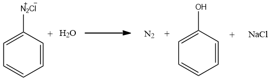 -On hydrolysis of Benzene diazonium chloride, Nitrogen molecules escape as nitrogen gas. The OH group of water attacks the vacant site left after removal of nitrogen gas. This results in the formation of phenol. Also, Small amount of NaCl is also generated.