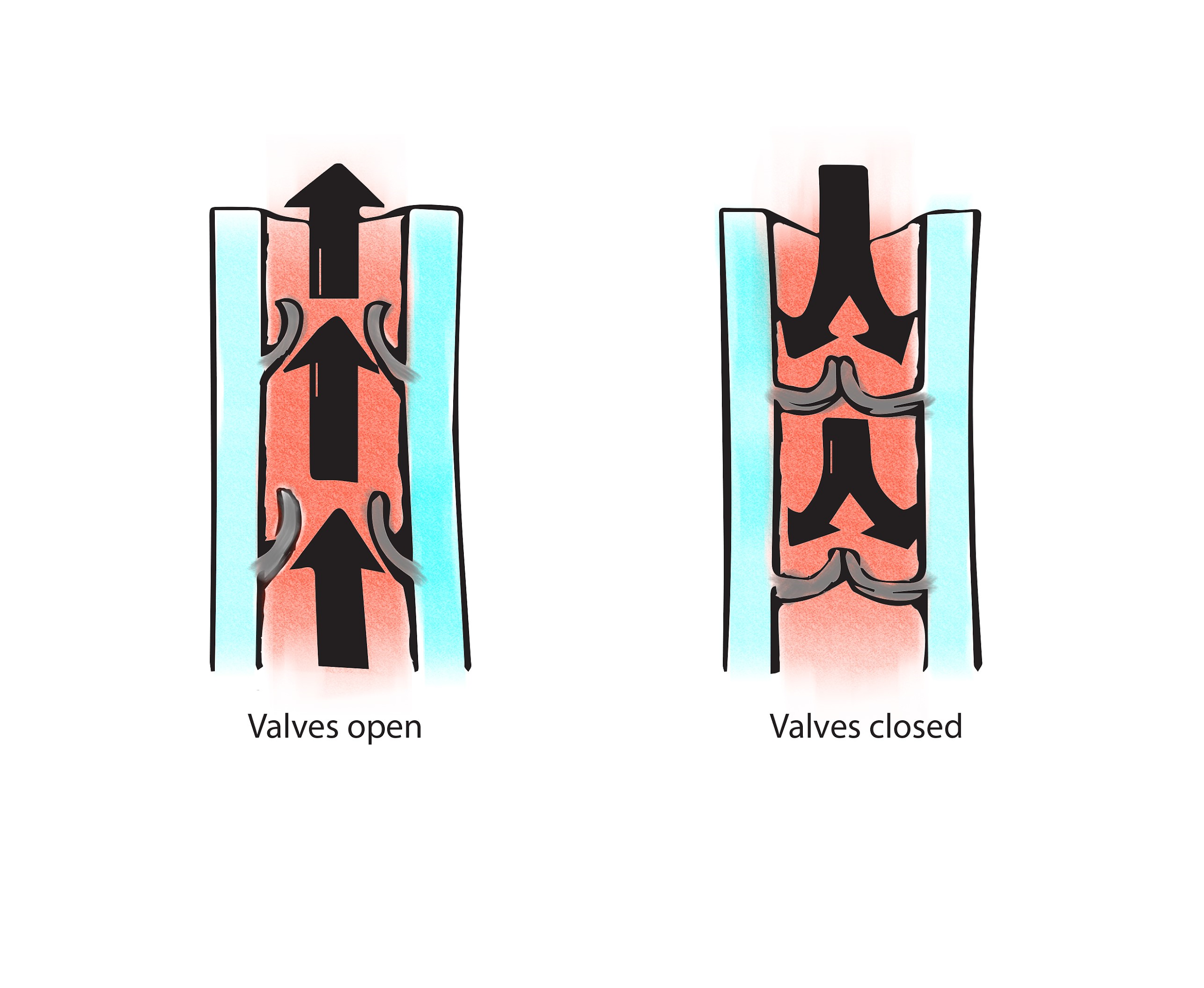 - When valves in veins fail to work properly, they do not close and blood flows backward in the opposite direction towards the heart due to gravity.