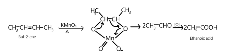 $C{H_3} - CH = CH - C{H_3}\xrightarrow{{KMn{O_4}}}2\;C{H_3}COOH$