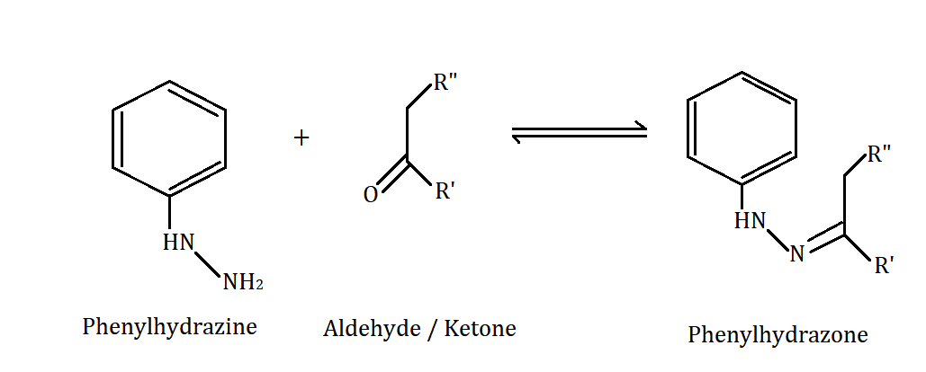 When carbonyl compounds like aldehydes or ketones react with phenyl hydrazine then, the following reaction takes place: