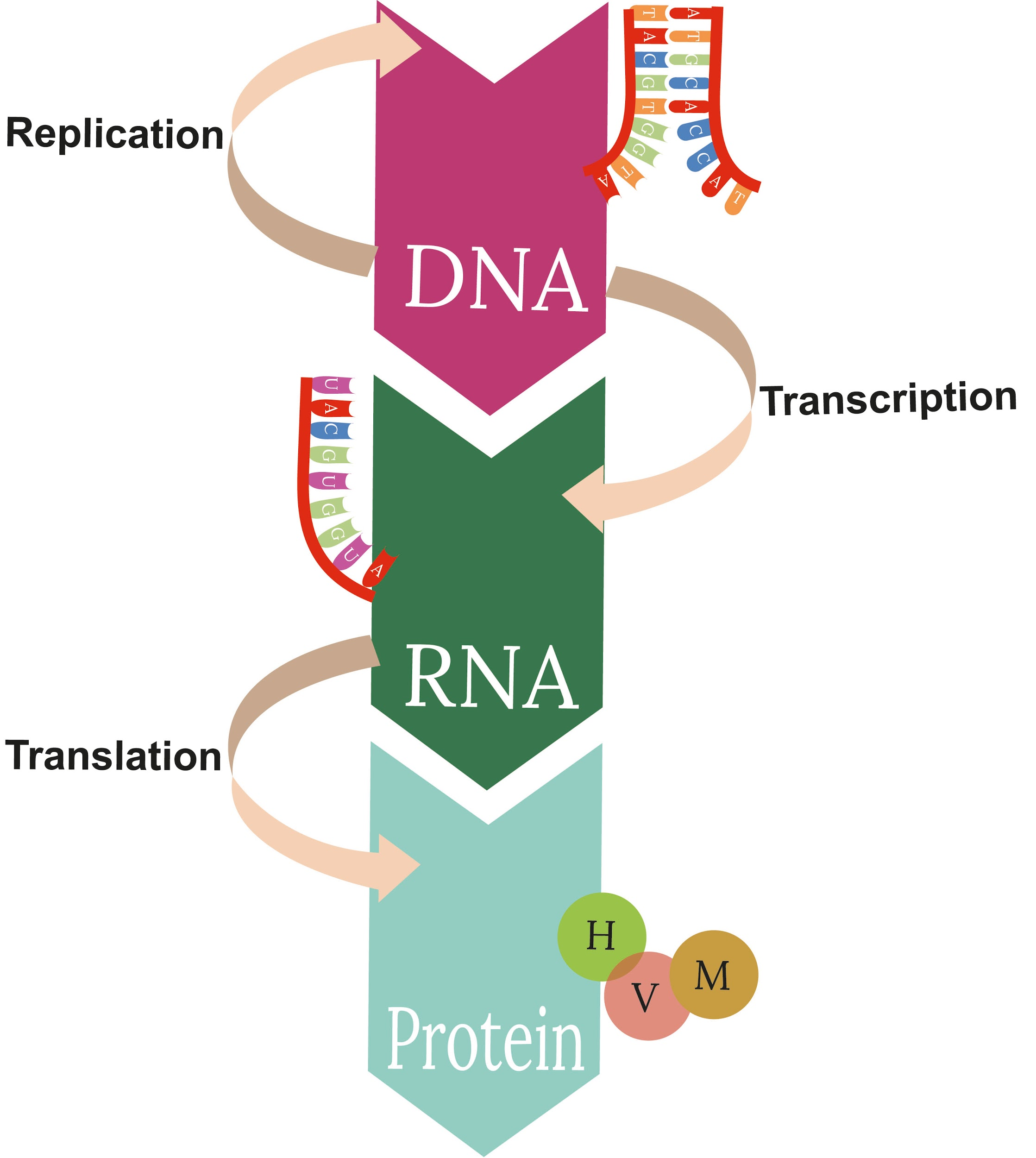 The molecular path of the flow of genetic information is explained by central dogma. Appropriately, the progression of hereditary data is unidirectional and includes four cycles.
