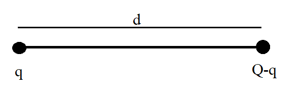 $F=k\dfrac{{{q}_{1}}{{q}_{2}}}{{{r}^{2}}}=k\dfrac{q(Q-q)}{{{d}^{2}}}$