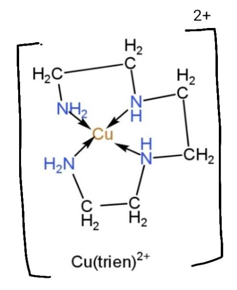 ${{[Cu(trien)]}^{2+}}$, this complex contains trien (triethylenetetramine) as a ligand. The ligand has denticity of 3, so the binding will occur and the structure becomes,