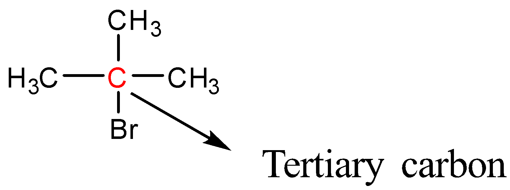 Tertiary halides: In tertiary halides, the carbon atom bonded to the halogen atom is bonded to three carbon atoms. More simply we can say that the halogen atom is bonded to a tertiary carbon.