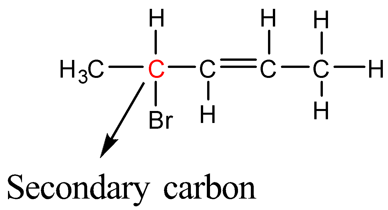 Here Bromine is bonded to a secondary carbon atom; therefore 4-Bromopent-2-ene is a secondary halide.