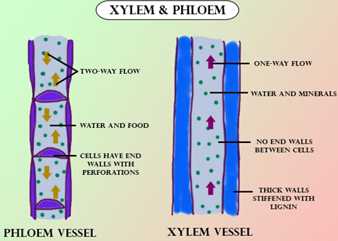 | Xylem tissues are composed mainly of dead cells. | Phloem tissues are mainly composed of living cells. |