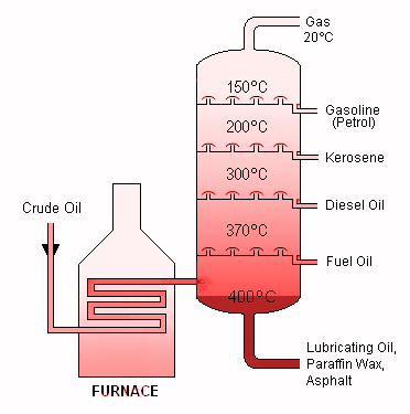 Fractional distillation divides a mixture into several portions, known as fractions. Above the mixture is a tall fractionating column with multiple condensers coming out at varying heights. The bottom of the column is heated, while the top is cold. High-boiling-point compounds condense near the bottom, whereas lower-boiling-point chemicals condense on their way to the top. Crude oil is made up of a variety of hydrocarbons. In the fractionating column, the crude oil evaporates and its vapours condense at different temperatures. Hydrocarbon molecules with a comparable amount of carbon atoms and a comparable range of boiling temperatures are found in each percentage. The graphic below summarises the major crude oil fractions, their applications, and property trends. The gases depart at the top, the liquids condense in the centre, and the solids remain at the bottom of the column. The hydrocarbons have: as they go up the fractionating column