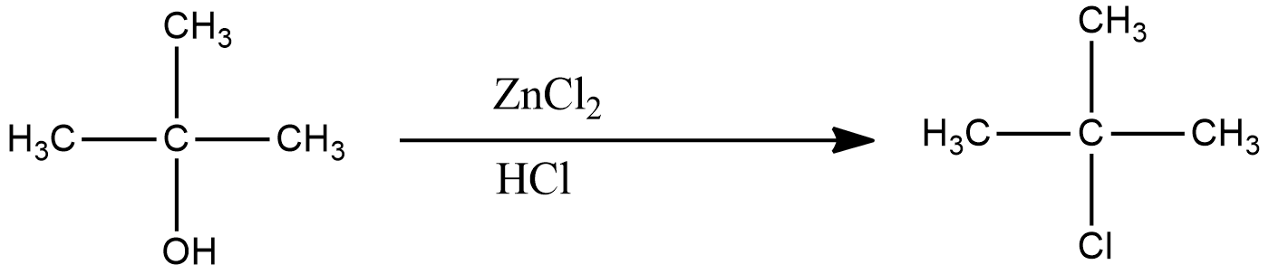 The above reaction happens instantly for tertiary alcohols. This is confirmed by the solution turning turbid. Primary alcohols react on long withstanding.