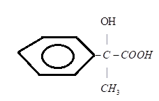 ${C_6}{H_5}C(OH)(C{H_3})CN\xrightarrow{{HOH}}{C_6}{H_5}C(OH)(C{H_3})COOH$
