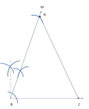 Step 3: We will adjust the compass to the length equal to AB + AC = 13 cm. We will mark an arc of 13 cm from B on the ray BM. Let the arc cut BM at N.