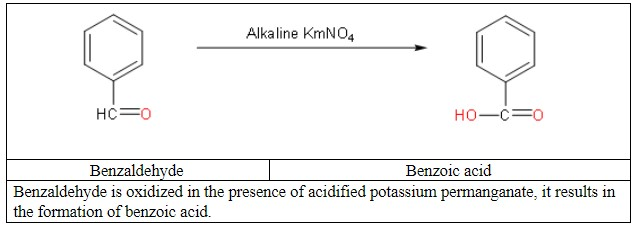 So, now we will focus on our question: the conversion of benzaldehyde to benzoic acid.