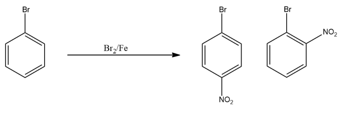 Note: In the nitration reaction of bromobenzene we get a mixture of compounds having the same molecular formula. The first product obtained is the major product due to lesser electronic repulsion. However, the second product is minor in quantity due to increased electron repulsions.
