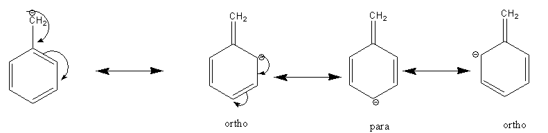 The resonance structures indicate that negative charge mobilized to the ortho and para position of the aromatic ring.