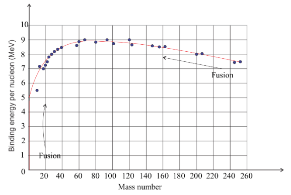 The diagram below shows us the variation of binding energy per nucleon with mass number $ A $