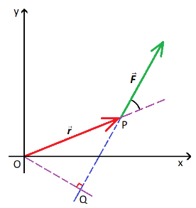 \[\Rightarrow \overrightarrow{{{\tau }_{o}}}\,\,=\,\overrightarrow{\,r}\times \overrightarrow{F}\]