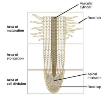 > When roots elongate, the older hairs die and new root hairs are developed so that they are in contact with fresh supplies of water in the soil.