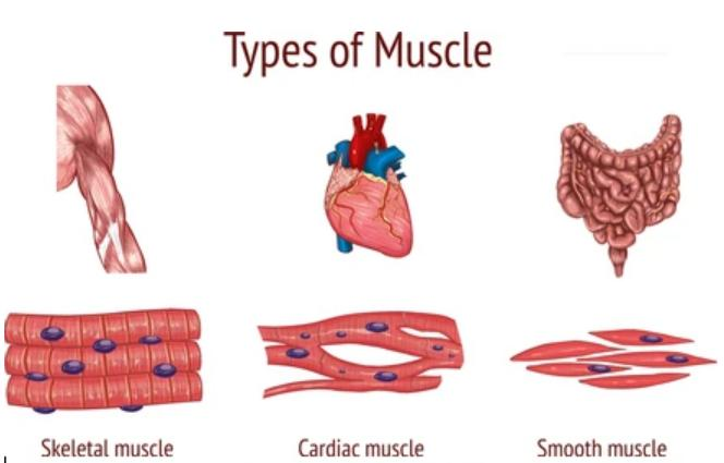 The three main types of muscle in the body include skeletal, smooth, and cardiac muscles.