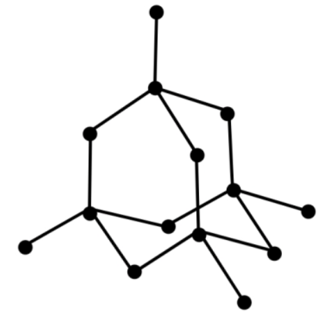 Describe the structure of diamond. Draw a simple diagram to show the arrangement of carbon atoms in it.