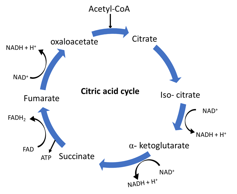 | Glycolysis is a linear pathway. | The citric acid cycle (Krebs cycle) is a cyclic pathway. |