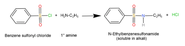 This is how Hinsberg’s test helps to differentiate between primary, secondary and tertiary amines by observing the difference in the solubility of the sulfonamide product in alkali.