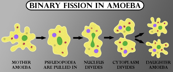 Sexual reproduction in protists is very rare and is called conjugation where the two different protists come together to fuse and exchange their genetic material. It is a temporary method that occurs for a short period of time and very rarely. A single parent is required for the process of asexual reproduction resulting in identical daughter cells or offsprings. The various types of asexual reproduction are fission. fragmentation, and budding. Fission is of two types, the Binary fission, and the multiple fission. The process of binary fission is the formation of two new daughter cells through the division of single-parent cells while on the other hand the cell division of the single parent cell into many daughter cells is called multiple fission. Both these methods lead to the formation of identical new daughter cells similar to the parents. Another type of asexual reproduction is the process in which the parent’s cells break into a small fragment and the small fragrant develops into a completely new individual is known as fragmentation.