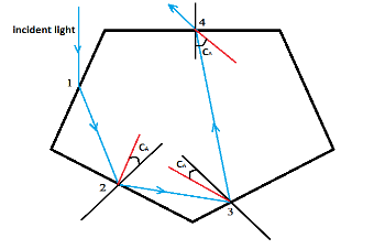 Thus, due to this reason of more total internal reflection of the diamond than the glass the diamond shines more than a glass piece cut to the same shape.
