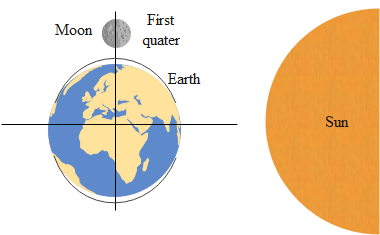 Neap tides are also known as the weak tides. This is because they are very small compared to the highest high tide possible i.e. spring tides. The neap tides occur when there is a right angle between the sun and the moon hence the gravitational pull at this point is the weakest on the earth. Therefore we will draw the diagram of the moon at different positions with respect to the earth and accordingly classify the moon from the options provided.