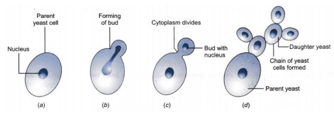 How does yeast reproduce asexually? Show it diagrammatically.