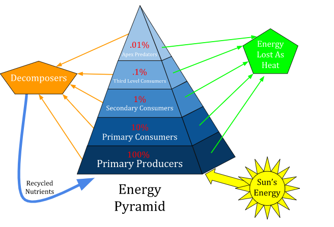 The system collapses when the primary energy source, the sun, loses power due to a one-way flow of energy. Second, energy levels gradually decrease at each nutritional level, mainly because they are released as heat during metabolic activity.