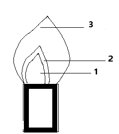 A candle flame can be divided into three zones (as seen in the diagram – zone 1, 2 and 3).