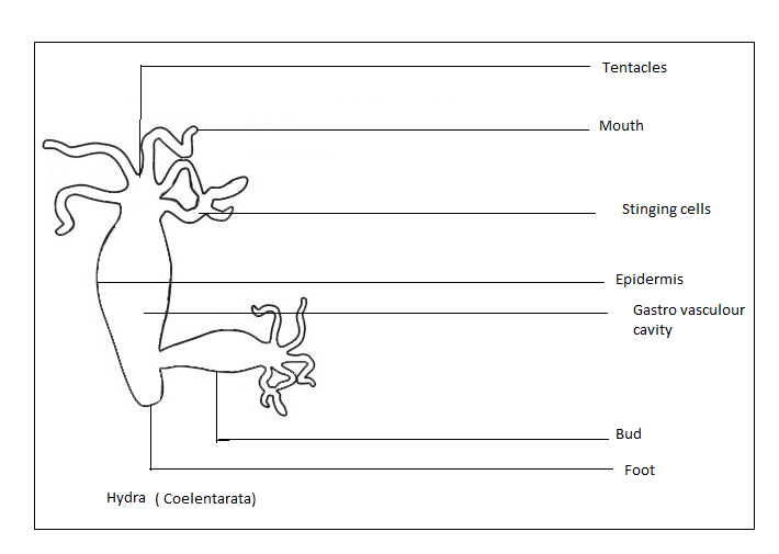 Draw a neat and labelled diagram of Hydra (Coelenterata).