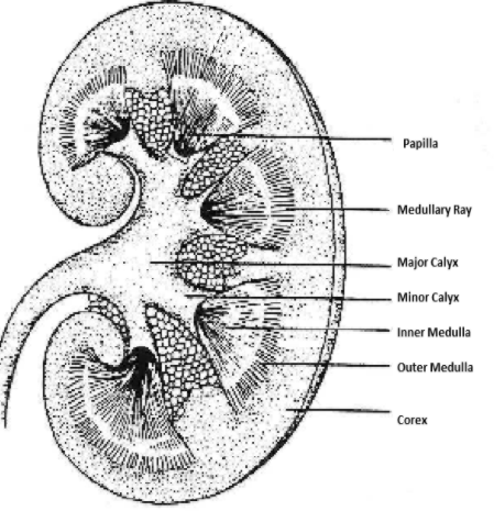 Draw a neat and well-labeled diagram of kidney