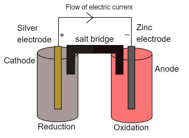 Hint: Galvanic cells are also known as electrochemical cells which consist of two electrodes namely cathode and electrode. At cathode reduction of metal takes place whereas at anode oxidation of metal takes place. Thus in galvanic cells redox reaction takes place consequently. Here zinc gets oxidized and silver gets reduced at their respective electrodes respectively.