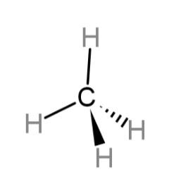 The structure of methane has a tetrahedral geometry and can be drawn as: