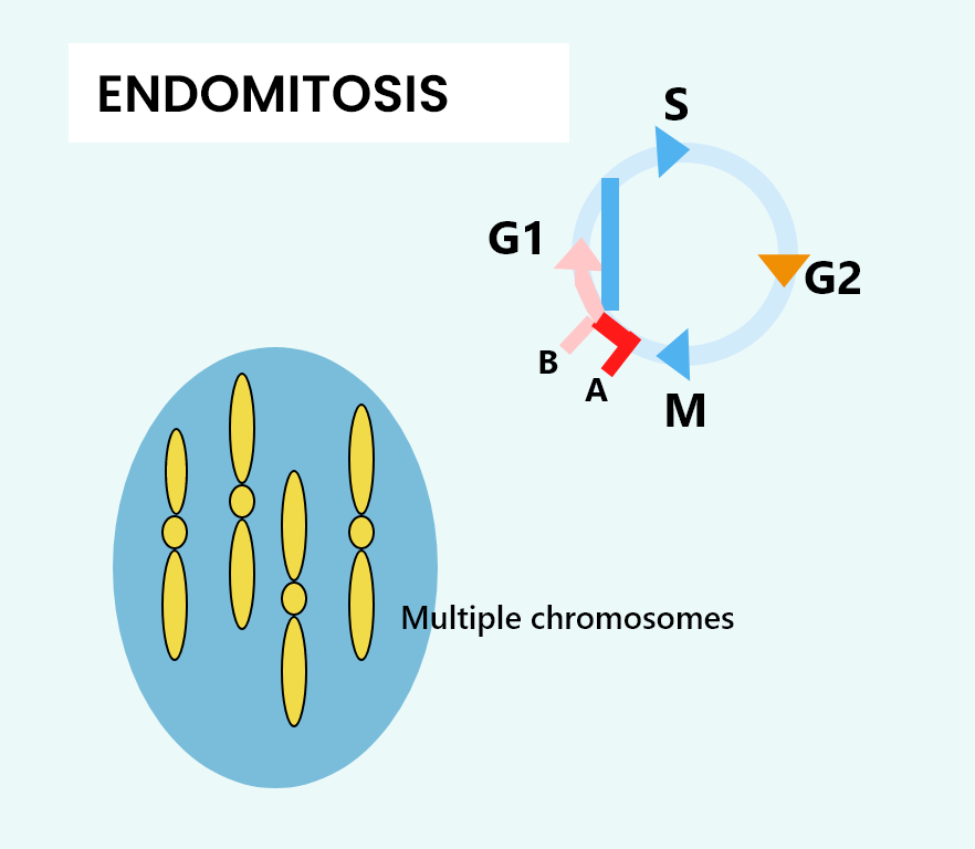 The endomitosis is a condition in which the mitosis occurs without the nucleus. The amount of the genetic material doesn’t get divided into two cells and remains in one cell only. This leads to an increase in the amount of the genome of the cell. Endomitosis results in the polyploidy in the cells.