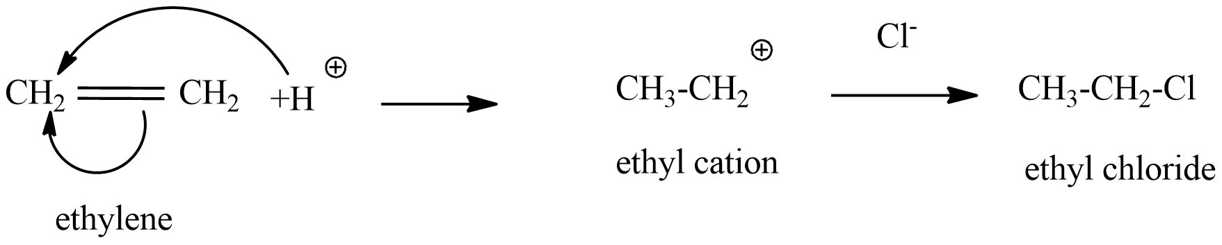 (A) ethylene reacts with dry HCl gas, this is a type of electrophilic addition reaction.