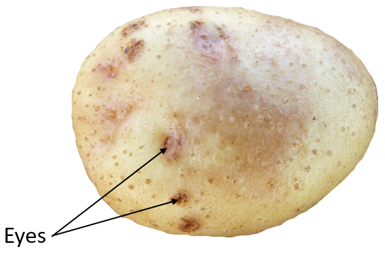 Hint: Potatoes are modified stems and these bear eyes at the nodes present on the tuber. These eyes are capable of forming new branches of a potato plant in favorable conditions.