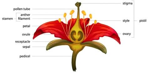 -Style is a pillar-like stalk through which pollen tubes grow to reach the ovary. Some flowers such as Tulips do not have a distinct style, and the stigma sits directly on the ovary. Whereas in some plants such as lilies, the style is a hollow tube or has transmitting tissues through which the pollen tubes grow.