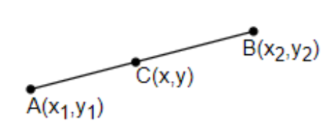 Hint: This is a simple question based on the mid-point theorem. In any straight line AB, whose coordinates are $A\left( {{x}_{1}},{{y}_{1}} \right)$ and $B\left( {{x}_{2}},{{y}_{2}} \right)$ and if the mid-point of AB is $C\left( x,y \right)$, then, $x=\dfrac{{{x}_{1}}+{{x}_{2}}}{2}$ and $y=\dfrac{{{y}_{1}}+{{y}_{2}}}{2}$.
