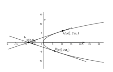 We will consider two points \[A\left( at_{1}^{2},2a{{t}_{1}} \right)\] and \[B\left( at_{2}^{2},2a{{t}_{2}} \right)\] on the parabola , where \[{{t}_{1}}\] and \[{{t}_{2}}\] are parameters.