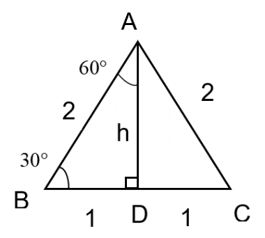 Using Pythagorean theorem, \[{{2}^{2}}={{1}^{2}}+{{h}^{2}}\Rightarrow h=\sqrt{{{2}^{2}}-{{1}^{2}}}\Rightarrow h=\sqrt{3}\]. We know that,