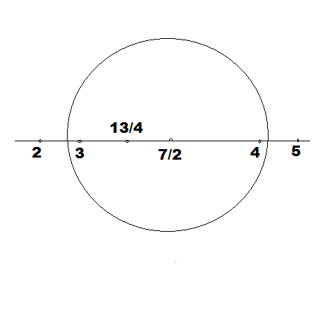 $\dfrac{{3 + 4}}{2} = \dfrac{7}{2}$ and $\dfrac{{3 + \dfrac{7}{2}}}{2} = \dfrac{{13}}{4}$
