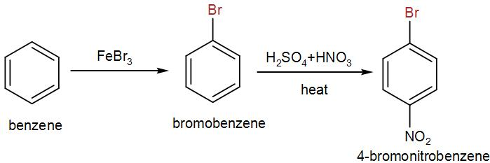 In the question, we have been asked to convert benzene to 4-bromonitrobenzene.